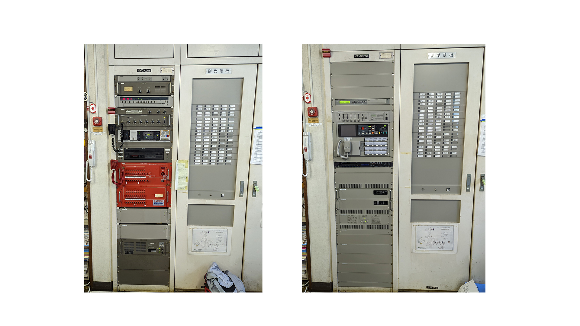 自立型非常放送設備 20回線・パワーアンプ総容量540Wと非常リモコン20回線の更新工事となりました。